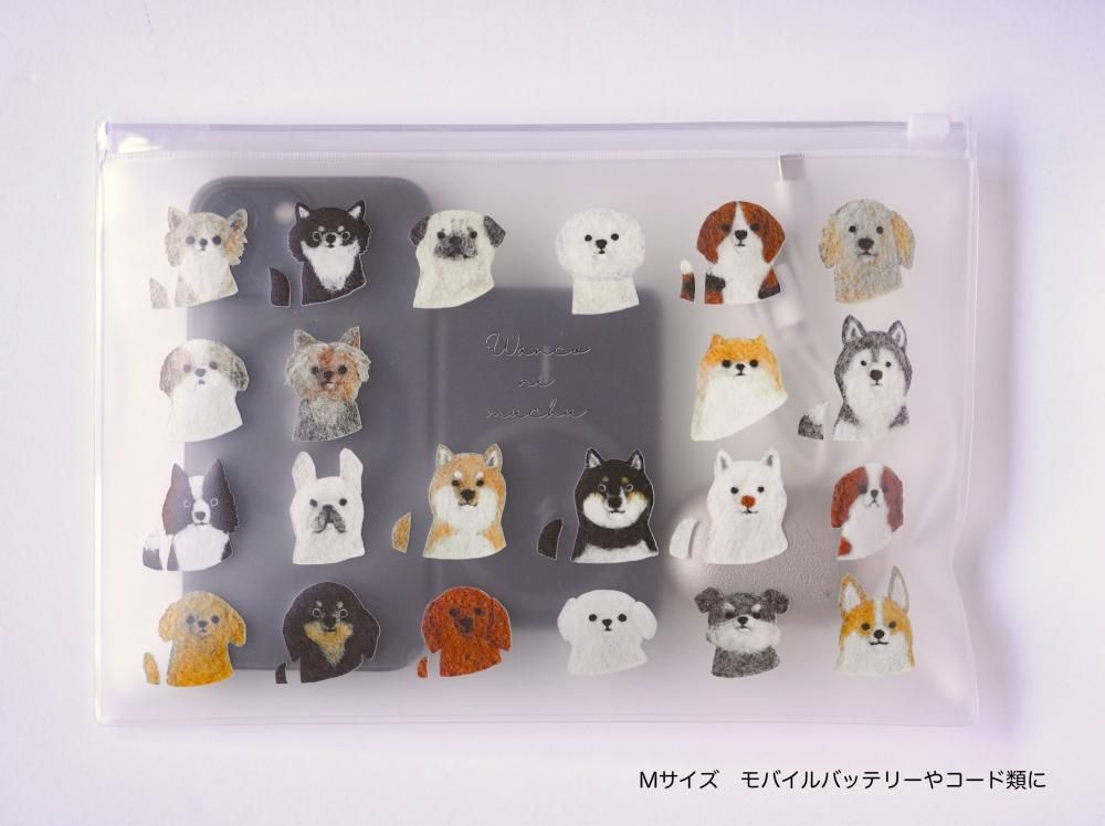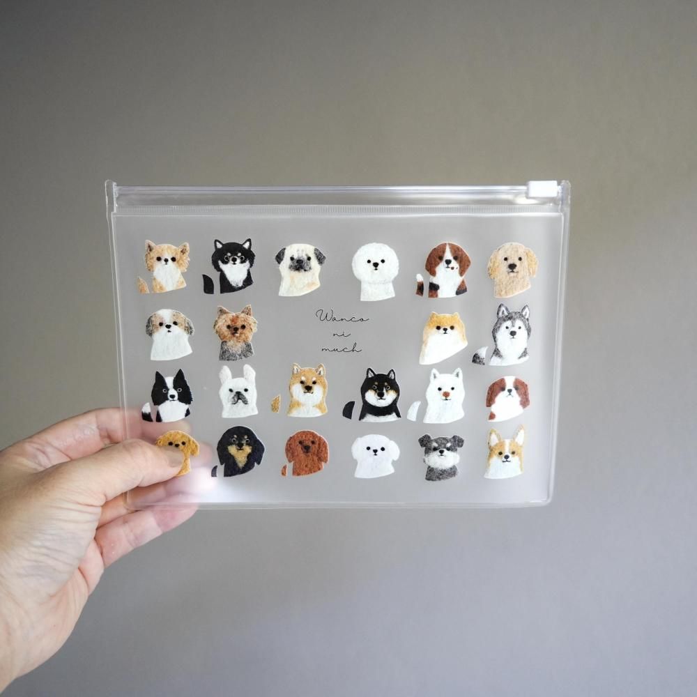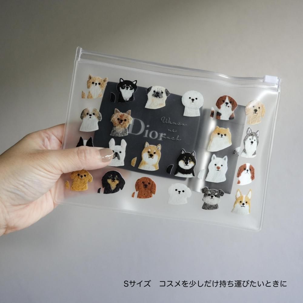 の3種類。透明素材に映えるイラストで、持ち歩くだけで気分が明るくなるポーチです。