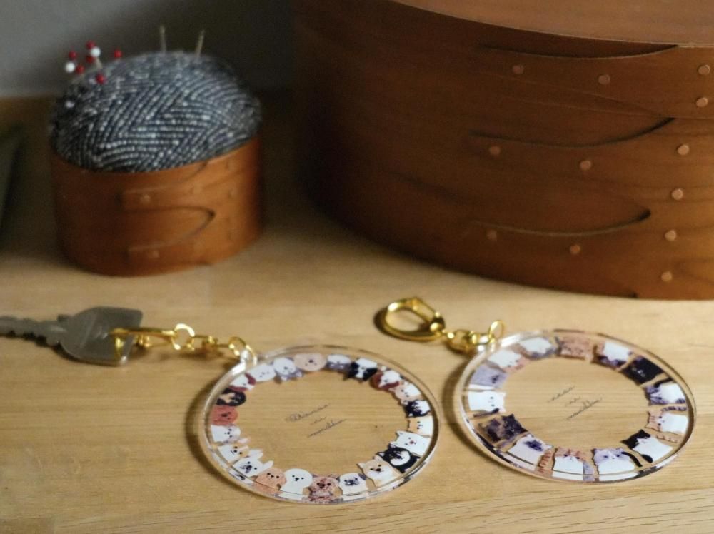 透明感のあるアクリルに犬と猫のデザインを閉じ込め、